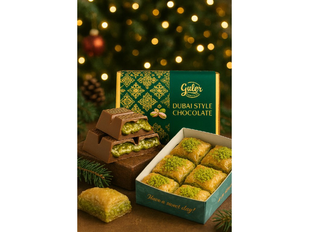 Objevte kouzlo Vánoc v orientálním stylu! 🎄 Náš exkluzivní vánoční balíček spojuje bohatou, krémově jemnou bílou čokoládu naplněnou sytě zelenými pistáciemi a křupavým kadayifem s tradiční pistáciovou baklavou — tenoučkými plátky filo těsta plněnými čistými pistáciemi a zalitými medovým sirupem. Každý kousek je pečlivě ručně připraven, aby potěšil milovníky sladkého, kteří ocení autentickou chuť orientu 🕌. Ideální jako stylový vánoční dárek nebo sladká tečka po slavnostní večeři — udělejte z Vánoc ukázkově sladký a elegantní zážitek.